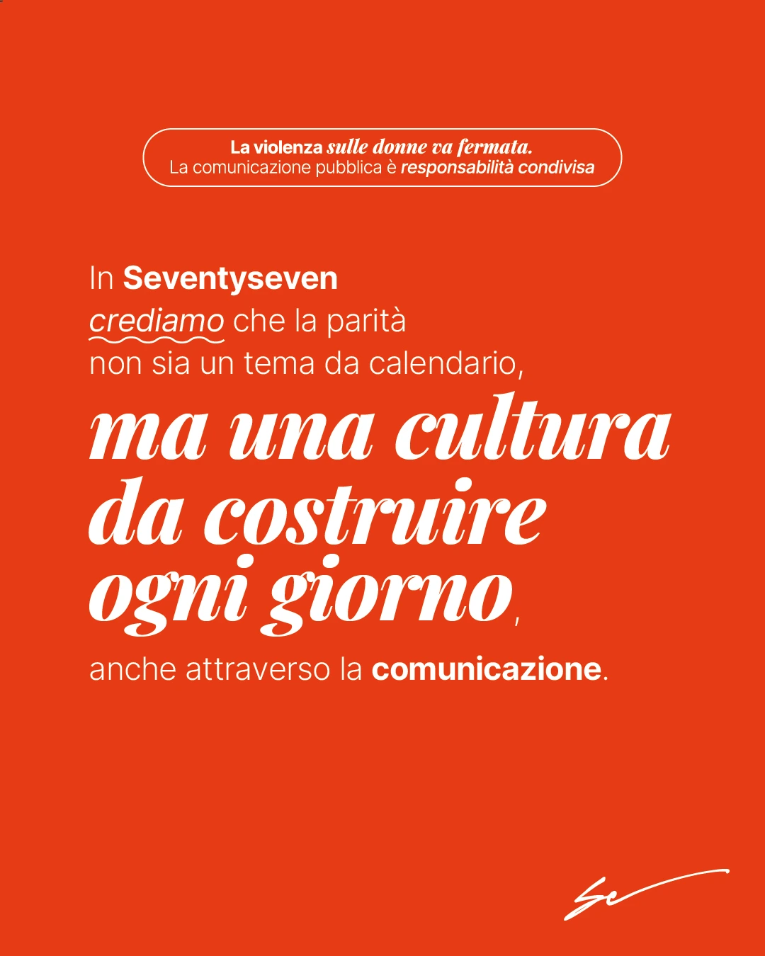 In Seventyseven crediamo che la parità di genere non sia una ricorrenza del 25 novembre, ma una cultura da costruire ogni giorno, dentro e fuori i luoghi di lavoro.